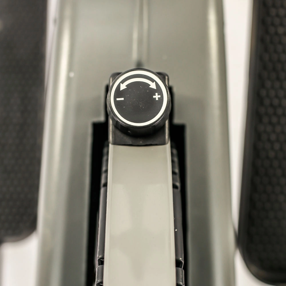 Caminador elíptico de uso residencial que propone un entrenamiento completo y de fácil aprendizaje. Propone diversas comodidades para el usuario como un asiento ajustable en altura del mismo y una computadora donde se visualiza de forma sencilla el tiempo, velocidad, calorías y distancia. El equipo está diseñado específicamente para su fácil traslado y una cómoda ubicación en el hogar. Sugiere un peso máximo de usuario de 120 Kg.