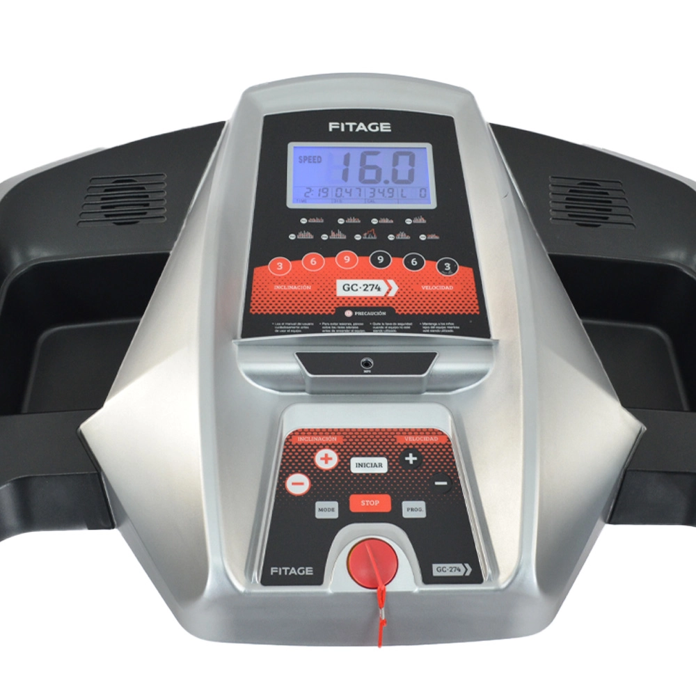 Llegó la nueva Cinta Fitage, con el agregado de inclinación automatica, que se controla desde la consola, sin necesidad de bajarse del equipo. Esto permite muchas mas opciones a la hora de entrenar. La cinta GC-274 posee un motor muy potente de 4.0HPP en pico (2.5HP como potencia equivalente) y alcanza los 16 km por hora. Su diferencial es la tecnología integrada Fitage de absorción de impacto SoftWalk y accesos rápidos ITS (Intelligent Touch System). Permite apoyar un celular o tablet y además cuenta con un porta vasos/botellas. Cuenta con un programa de control de ritmo cardíaco, en un monitor electrónico que además indica velocidad, tiempo, distancia recorrida y calorías consumidas. Sus ruedas de traslado permiten moverla sin esfuerzo.